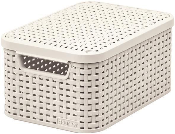 Koš s víkem, krémová, 7 l, umělý ratan, CURVER