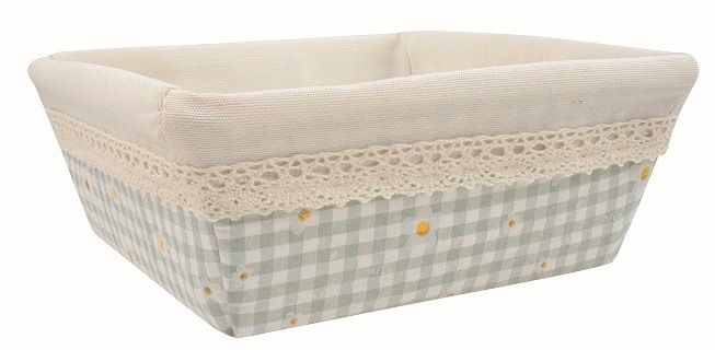 Košík látkový tyrkysově modrý s květinami 13 x 5 x 13 cm