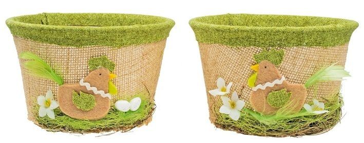 Košík velikonoční s jutou a zeleným dekorem 14 cm