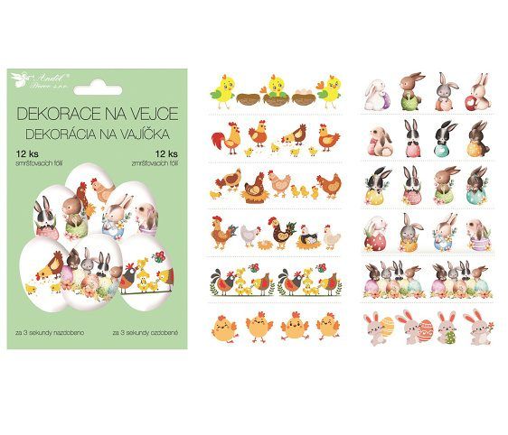 Smršťovací fólie na vajíčka- po ponoření do vroucí vody košilka okamžitě přilne k vajíčku- 12ks v balení- mix motivů
