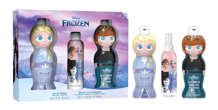 Kosmetická kazeta Ledové království obsahuje parfém ETD 150 ml + sprchový gel a šampon 2v1 jako firgurky Elsa & Anna.