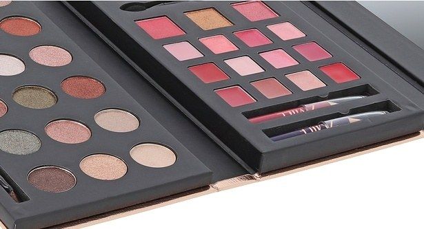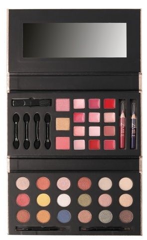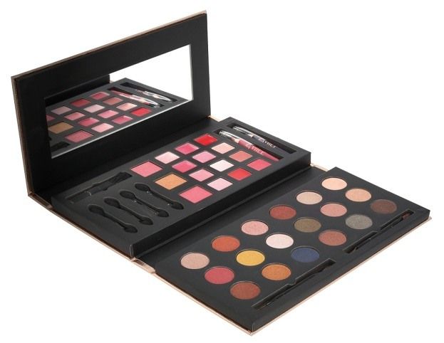 Kosmetická paleta rozkládací ‚Glam To Go‘ – ve dvou patrech obsahuje 18× oční stíny, 12xkrémovou rtěnku, tvářenku, bromzový pudr, 1xoční tužku, 1xtužku na rty, 1xaplikátor a integrované zrcátko. Dermatologicky testováno, vyhovuje přísným normám EU.