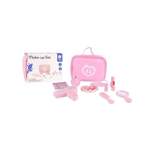 S touto dřevěnou make-up sadou máte vždy vše po ruce, abyste byla krásná. Věci snadno přenesete ve veselé růžové taštičce. Kosmetická taštička s doplňky pro líčení je ideální hračkou pro malou princeznu. Tato sada pomáhá podporovat rozvoj dětské představivosti a také rozvíjí jemnou motoriku.