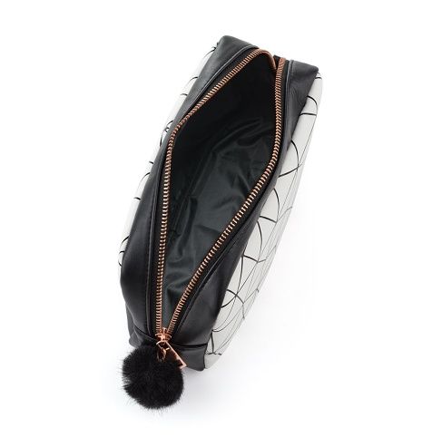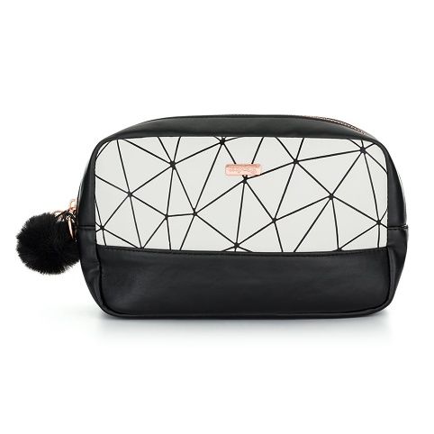 Větší cestovní kosmetická taška v černobílém provedení. Vhodná k uskladnění toaletních a kosmetických potřeb.