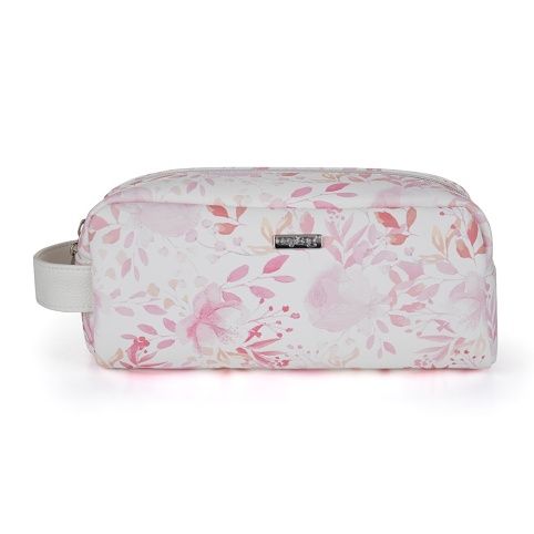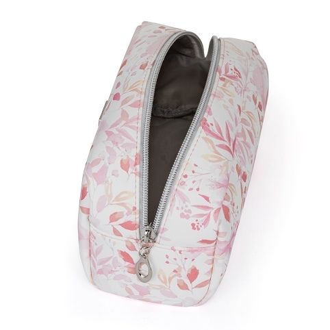 Menší cestovní kosmetická taška v květinovém provedení. Vhodná k uskladnění drobných toaletních a kosmetických potřeb.