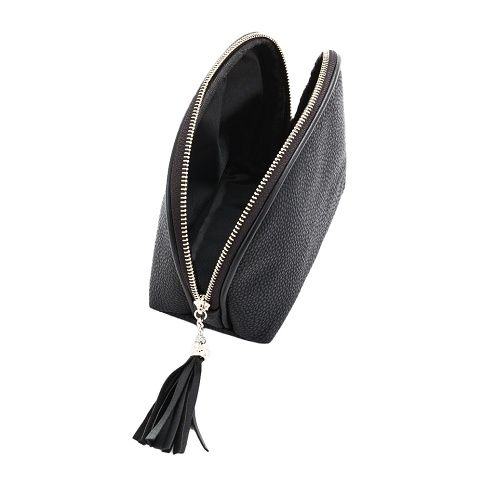 Cestovní kulatá kosmetická taška v černém provedení. Vhodná k uskladnění toaletních a kosmetických potřeb menší velikosti.