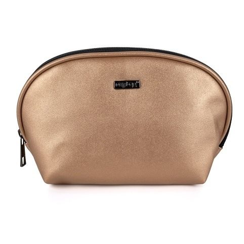 Cestovní kulatá kosmetická taška v hnědém provedení. Vhodná k uskladnění toaletních a kosmetických potřeb menší velikosti.