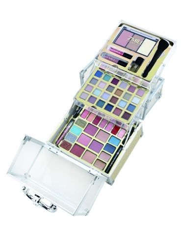 Kosmetický kufřík akrylátový zlatý ‚Glam‘ – celkem 64 ks příslušenství. Obsahuje 30 ks očních stínů, 2×lesk na rty, 1×třpytivý lak na nehty,1ךtětec, 3×oční linky, 7×krémová rtěnka, 6ךtětec, 4×třpytkový krém na tělo, 4×krémové oční stíny, 2×oboustranný aplikátor, 1×tužka na oči, 1×tužka na rty, 1×malý šteteček na rty a 1×malý štěteček na pudr. Dermatologicky testováno, vyhovuje přísným normám EU.