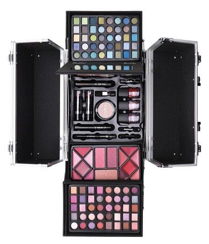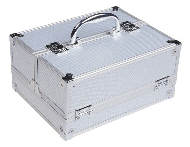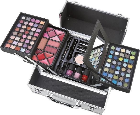 Kosmetický hliníkový kufřík – celkem 113 ks příslušenství. Obsahuje 80× očními stíny, 14× lesk na rty, 3× tvářenka, 3× lak na nehty, 2× rtěnky, 1×pudr, 1× tužka na oči, 1× řasenka, 1× linka,1× tužka na rty, 5× aplikátory/štětce a integrované zrcátko. Dermatologicky testováno, vyhovuje přísným normám EU.