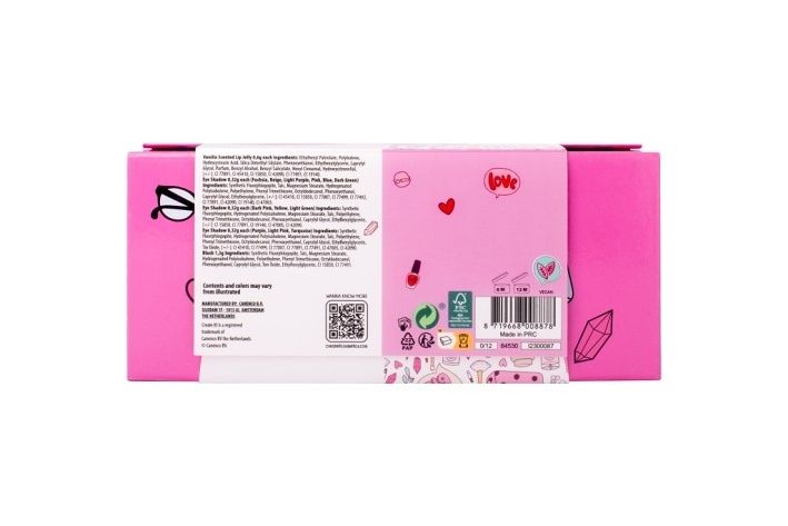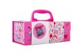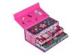 Kosmetický kufřík rozkládací třípatrový Creat it! – obsahuje v horním partře 12× oční stíny + tvářenku, v prostřením patře 6× rtěnku a 6× lesk na rty a ve spodní patře příslušenství – aplikátor na oční stíny, pilník, zrcátko, kamínky na nehty.