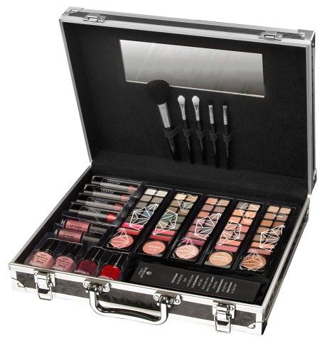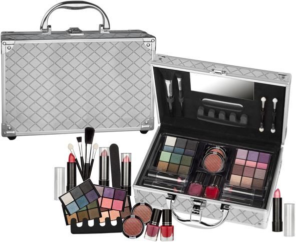 Kosmetický kufřík hliníkový s integrovaným zrcátkem. Obsahuje 24×