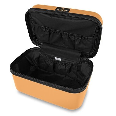 Lehký a praktický kosmetický kufřík Walker The Concept 2.0 Vanity v broskvové barvě. Kufřík má hlavní komoru se 4 vnitřními kapsami, včetně kapsy s dělicí příčkou na zip a polyesterovou podšívku pro snadné čištění. ,,Rozměr 33 x 22 x 21 cm. Objem 13 l. Hmotnost 900 g.