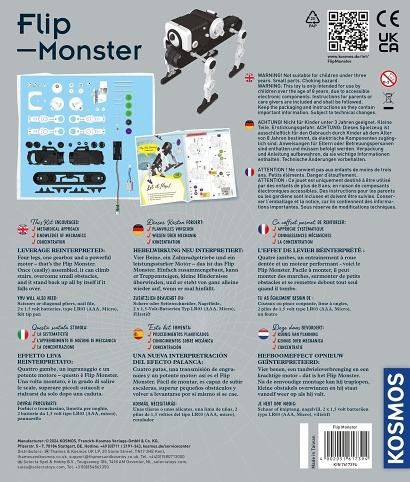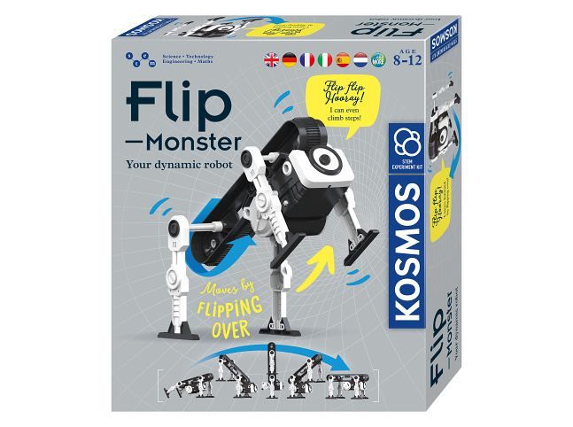 Flip Monster překlápěcí robot. Flip monster má 4 nohy a silný motor. Jednoduše se skládá, umí lézt do schodů, překonávat malé překážky a pokud spadne, sám se postaví. Baterie 2xAAA nejsou součástí balení. Český návod ke stáhnutí v digitální podobě-QR kód na krabici a v návodu.