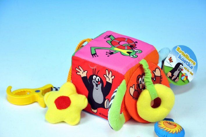 Měkoučká textilní kostka s Krtečkem a jeho přáteli zaujme malá miminka na první pohled, a to svou barevností a zvuky.