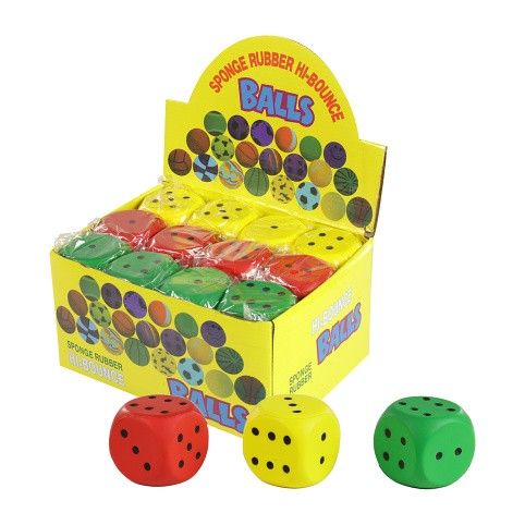 Míček ve tvaru kostky je vyroben z pěny a jeho rozměr je cca 6 x 6 x 6 cm. Ve třech barvách. Minimální množství pro odběr je 24ks.