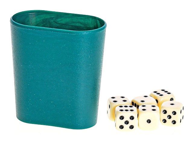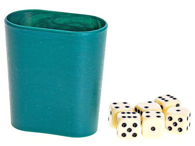 Kostky hrací 16mm 6ks s kelímkem v krabičce