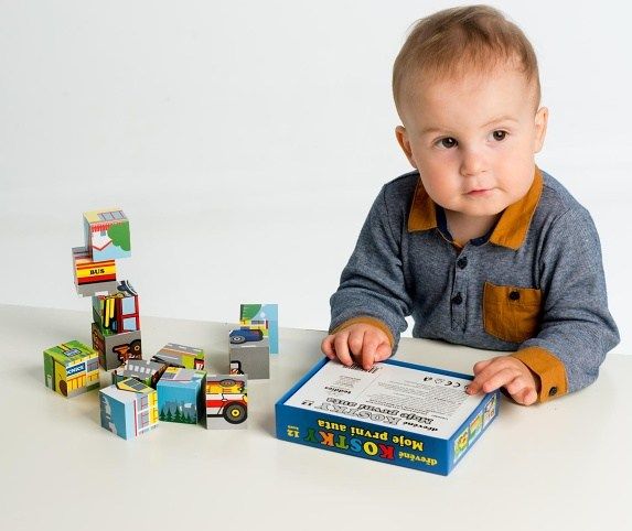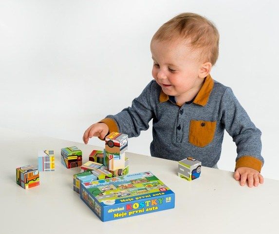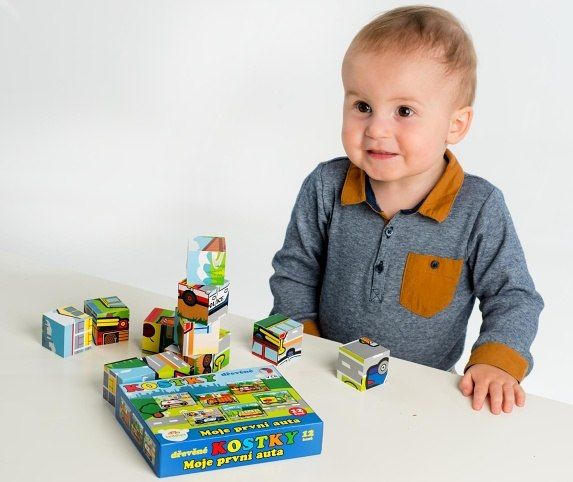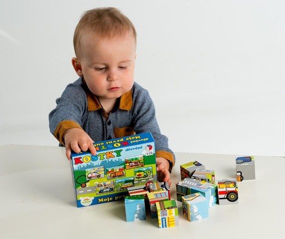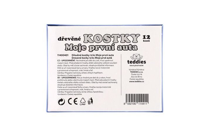 Kostky kubus dřevěné Moje první auta 12ks v krabičce 17x12,5x4cm MPZ
