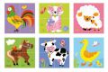 Dřevěné kostky, ze kterých lze složit 6 obrázků zvířátek. Celkem 4 ks. Rozměry kostky cca 4,5 x 4,5 cm.