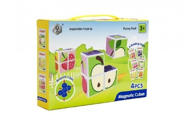 Plastové kostky s motivem ovoce. Kostky jsou magnetické, děti z nich tedy mohou skládat trojrozměrné objekty. Děti si mohou postavit jablko, jahodu, hrozny, třešně, banán či broskev. Dětské kostky podporují koordinaci a motoriku, rozvíjí fantazii a logické myšlení.