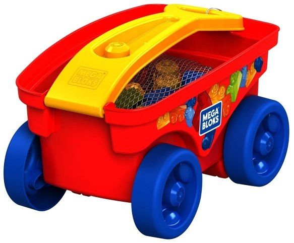 Mega Bloks kostky ve vozíčku – vozíček obsahuje kvalitní kostky, které lze vždy snadno uložit a také je snadno vzít s sebou! Vhodné pro děti od 1 roku.