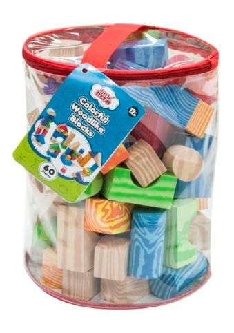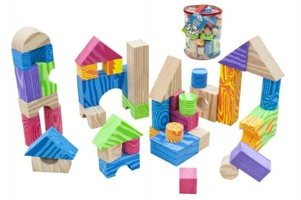 Kostky pěnové barevné měkké 60ks imitace dřeva v plastové tašce 23x28x23cm