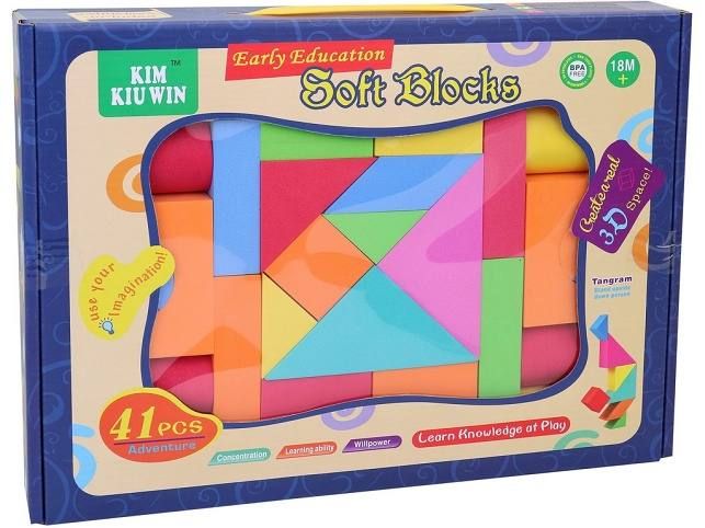 Kostky softové, 41 ks, 30 x 22 x 4 cm. Skvělá hračka pro rozvoj jemné motoriky, přirozený rozvoj logického myšlení a barvocitu. Balení obsahuje 41 různých geometrických tvarů v pěkných barvách. Nemusíte se bát poranění od ostrých hran. Všechny tvary jsou příjemmně měkké. Hračka je určena pro děti 3+. Rozměr hračky je 30 x 22 x 4 cm. Materiál hračky je pěna. Balení hračky je box.