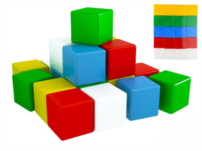 Dřevěné kostičky o velikosti 7cm v různých barvách, ze kterých lze sestavovat různé stavby. Balení obsahuje 20ks kostiček.