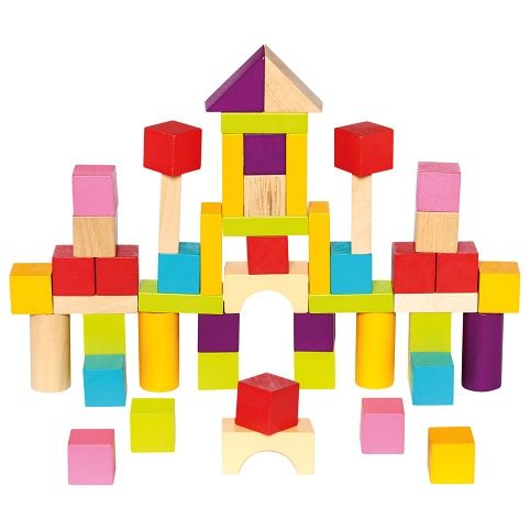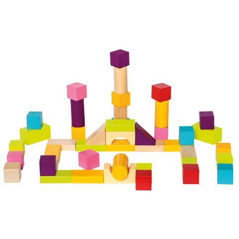 Sada 50 kusů kostek v pestrých barvách poskytuje nekonečně mnoho zábavy se stavěním, učením poznávat velikosti, protiklady (velký/malý, nahoře/dole) a další prostorové a počtářské dovednosti. Hračka pomáhá rozvíjet intelekt a logické uvažování, stejně jako trénovat jemnou motoriku.
