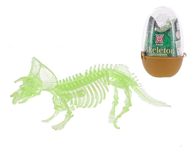 Vajíčko s překvapením! Ve vajíčku najdete lidskou kostru nebo kostru různých druhů dinosaurů. Kostra se skládá z 15 - 16 dílků a dokonce svítí ve tmě! Sestavte si kostru a pozorujte jak svítí.