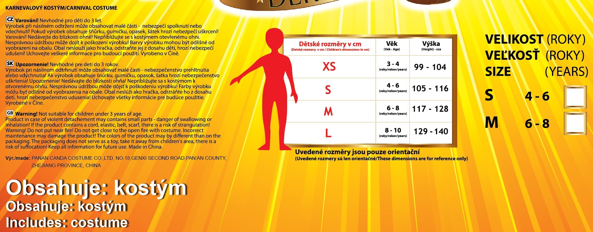 Roztomilý karnevalový kostým s motivem čarodějky udělá radost každé holčičce! Souprava obsahuje pouze šaty, koště není součástí balení. Set ve velikosti S je určen pro holčičky ve věkovém rozmezí 4-6 let. Staň se nejhezčí čarodějnicí karnevalu díky tomuto kostýmu!