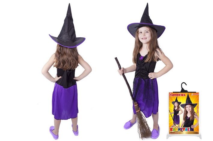 Roztomilý karnevalový kostým s motivem čarodějky udělá radost každé holčičce! Souprava obsahuje šaty a klobouk. Set ve velikosti S je určen pro holčičky ve věkovém rozmezí 4-6 let (110-116 cm). Staň se nejhezčí čarodějnicí karnevalu díky tomuto kostýmu!