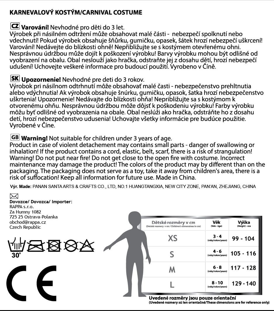 Magický karnevalový kostým pro malé čarodějnice! Kostým ve velikosti S je určen pro holčičky ve věkovém rozmezí 4-6 let (105-116 cm). Černé šaty jsou dekorovány stříbrnou pavučinkou. S tímto úchvatným kostýmem se zaručeně staneš hvězdou karnevalu i Halloweenu! Nejen letos je potřeba myslet EKO-nomicky i EKO-logicky! EKO-balení je vhodné zejména pro e-shopy kde zákazník nakupuje dle fotografie a není třeba velkého balení s věšákem. EKO-logicky – na balení bylo použito méně plastu a dalších materiálů. Jedná se o malý transparentní obal s fotografií. EKO-nomicky –EKO-obal zabere jen polovinu místa – šetřete skladová místa s námi!