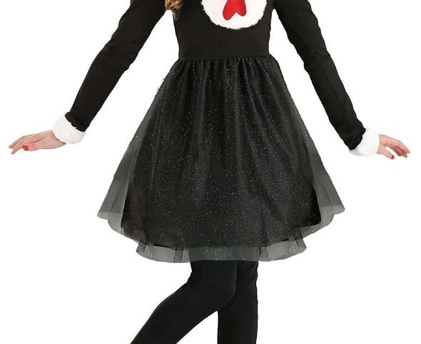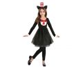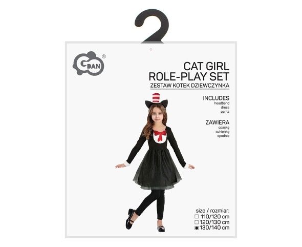 Kostým Černá kočička ve velikosti 130/140 cm je dětský karnevalový komplet určený pro holčičky, které si chtějí užít tematickou zábavu nebo párty v kostýmu kočičky. Tento set obsahuje tři hlavní části – čelenku s černými kočičími oušky, černé šaty a černé legíny, které společně vytvářejí kompletní a pohodlný outfit. Kostým je navržen tak, aby byl nejen vizuálně atraktivní, ale také praktický pro nošení během celodenních aktivit. Šaty jsou zhotoveny převážně z černé látky s dlouhými rukávy a zdobené výrazným bílým kouskem na hrudi, na kterém je červená mašle, dodávající kostýmu hravý a zároveň elegantní vzhled. Sukně šatů je tvořena lehkou, průsvitnou vrstvou s jemným třpytem, což dodává celému kostýmu nádech lesku a slavnostnosti. Na koncích rukávů se nachází bílé manžety, které ladí s bílou částí na hrudi a podtrhují celkový design. Černé legíny doplňují kostým a zajišťují pohodlí a volnost pohybu, což je důležité zejména pro děti během karnevalových her a tancování. Čelenka s kočičími oušky je stylovým doplňkem, který dokonale podtrhuje celkový vzhled a pomáhá identifikovat kostým jako kočičí. Celý set je vhodný pro děti s výškou 130 až 140 cm a je ideální volbou pro karnevaly, maškarní plesy nebo tematické oslavy. Z hlediska materiálu je kostým příjemný na dotek a umožňuje dostatečnou pohyblivost bez omezení. Díky jednoduchému, ale efektnímu designu je snadno kombinovatelný s dalšími doplňky nebo obuví podle potřeby. Tento kostým nabízí vyváženost mezi komfortem a atraktivním vzhledem, což z něj činí oblíbený výběr pro malé děti toužící po proměně v černou kočičku.