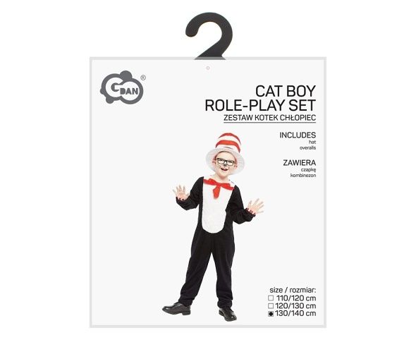 Kostým Černý kocour pro kluky ve velikosti 130/140 cm je kompletní převlek, který zahrnuje černou kombinézu a výrazný klobouk. Kombinéza je z měkkého materiálu černé barvy, který je pohodlný na nošení a zároveň dobře drží tvar. Na přední straně má kostým bílý oválný pruh připomínající kočičí bříško, což dodává kostýmu charakteristický vzhled. Rukávy jsou dlouhé a zakončené červenobílými proužky, což je detail, který oživuje celkový design. Součástí kostýmu je také klobouk v bílo-červených pruzích, který je dostatečně velký a pevný, aby držel svůj tvar během pohybu. Tento klobouk je ikonickým prvkem, který jasně odkazuje na známý motiv černého kocoura z dětských pohádek a karnevalových postav. Kostým je vhodný pro děti, které se chtějí na karneval nebo tematickou párty proměnit v hravého a zábavného černého kocoura. Kombinéza je celoplošná, s elastickými lemy u kotníků a zápěstí, což zajišťuje pohodlné nošení a lepší přizpůsobení oblečení dětské postavě. Díky elastickému materiálu a volnému střihu umožňuje kostým dětem volný pohyb a pohodlí i při delším nošení. Celkový design kostýmu je jednoduchý, ale zároveň výrazný, což zajišťuje snadné rozpoznání role během karnevalu či jiných dětských oslav. Produkt je zařazen do kategorie karnevalových kostýmů a je vhodný pro děti, které mají výšku v rozmezí 130 až 140 cm. Kostým je ideální pro kluky, kteří chtějí být na párty nebo během karnevalového veselí originální a zároveň pohodlně oblečení. Díky kvalitnímu zpracování a výrazným barevným prvkům je tento kostým praktickou a atraktivní volbou pro dětské převleky.