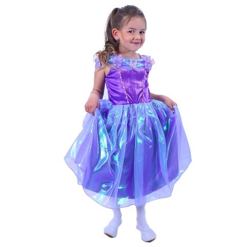 Okouzlující karnevalový kostým s motivem princezny ve fialové barvě, horní část je zdobena stylovými motýlky. Kostým ve velikosti S je určen pro holčičky ve věkovém rozmezí 4-6 let (110-116 cm).