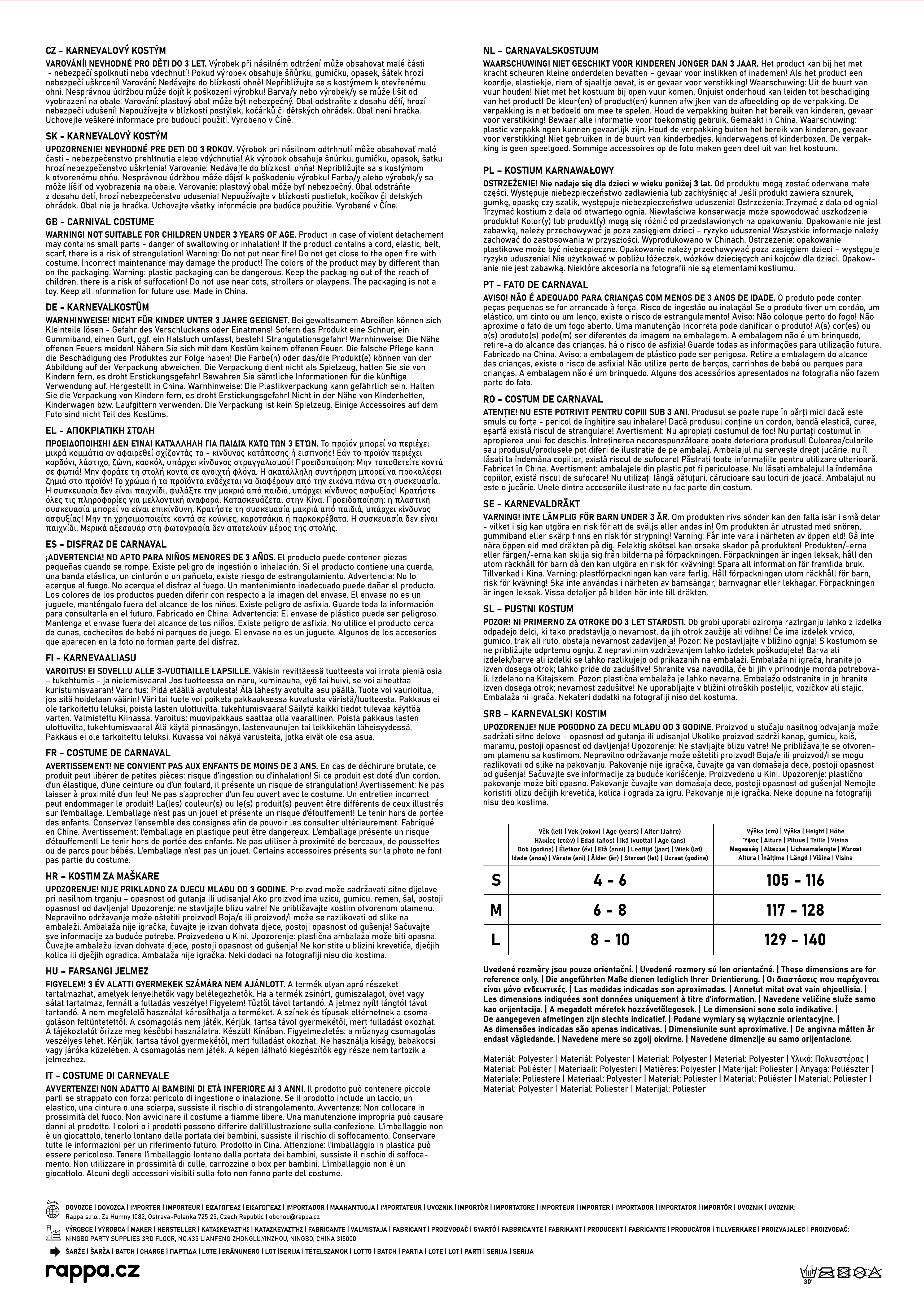 - KARNEVAL / DĚTSKÉ KOSTÝMY / Kostýmy pro KLUKY / 4-6 let - velikost S (110-120cm)