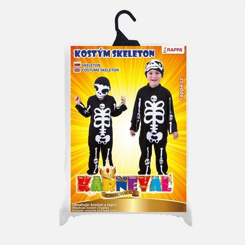 Balení obsahuje černou kombinézu a masku s bílým potiskem kostry