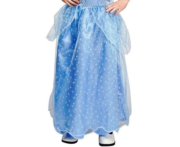 Kostým Ledová princezna je určen dětem s výškou 110 až 120 cm a nabízí autentický vzhled inspirovaný pohádkovými princeznami. Hlavní součástí kostýmu jsou šaty, které jsou vyrobeny z lesklého, světle modrého materiálu s jemným vzorem hvězdiček, měsíců a dalších zimních motivů, které připomínají ledovou královnu. Šaty mají dlouhou délku sahající až k nohám, což zajišťuje elegantní a pohádkový vzhled. Vrchní část šatů je zdobena průsvitnou vrstvou látky s krátkými rukávy, která přidává kostýmu lehkost a vzdušnost. Na předním díle šatů jsou navíc dekorativní prvky v podobě perlových řetízků a malého ozdobného kamínku, které dotvářejí celkový dojem princeznovského šatu. Sukně má navíc asymetrické vrstvy průsvitné organzy, které dodávají šatům objem a jemný třpytivý efekt. Kostým je vhodný pro karnevaly, dětské oslavy nebo tematické párty a umožňuje dětem proměnit se na elegantní ledovou princeznu. Díky použitým materiálům je kostým lehký a pohodlný na nošení, což ocení jak rodiče, tak samotné děti při celodenním používání. Tento kostým je ideální volbou pro všechny malé slečny, které si přejí zazářit v roli pohádkové postavy.