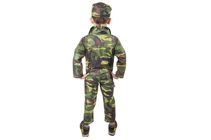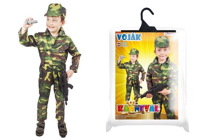 Karnevalový set pro opravdové vojáky! Tato sada obsahuje maskovací kombinézu a čepici. Senzace! Kostýmek vel. S je určen pro chlapečky ve věkovém rozmezí 4-6 let. Staň se hvězdou karnevalových večírků díky tomuto kostýmu.