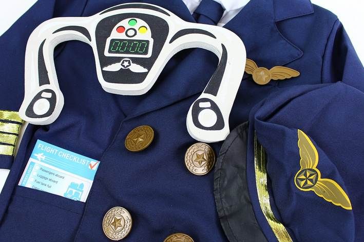 Kostým pro malého pilota, který je pro chlapečky od 3 do 8 let. Set obsahuje uniformu s čepicí a řídicí pákou (knipl). Staň se nepřehlédnutelnou hvězdou večírku díky této uniformě a ohrom všechny své kamarády!