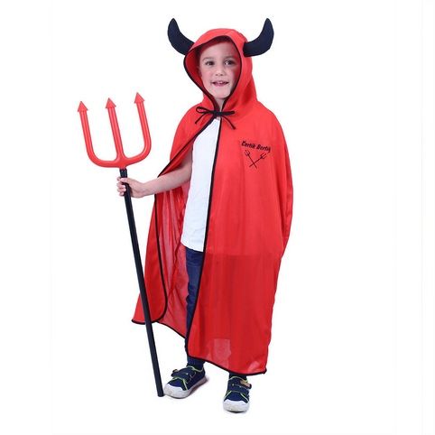 Karnevalový plášť čerta v červeno-černé barvě a v univerzální velikosti je určen pro děti ve věkovém rozmezí 3-10 let (104-146 cm). Balení obsahuje plášť s kapucí, na které jsou přišity rohy. Délka pláště je cca 104 cm.