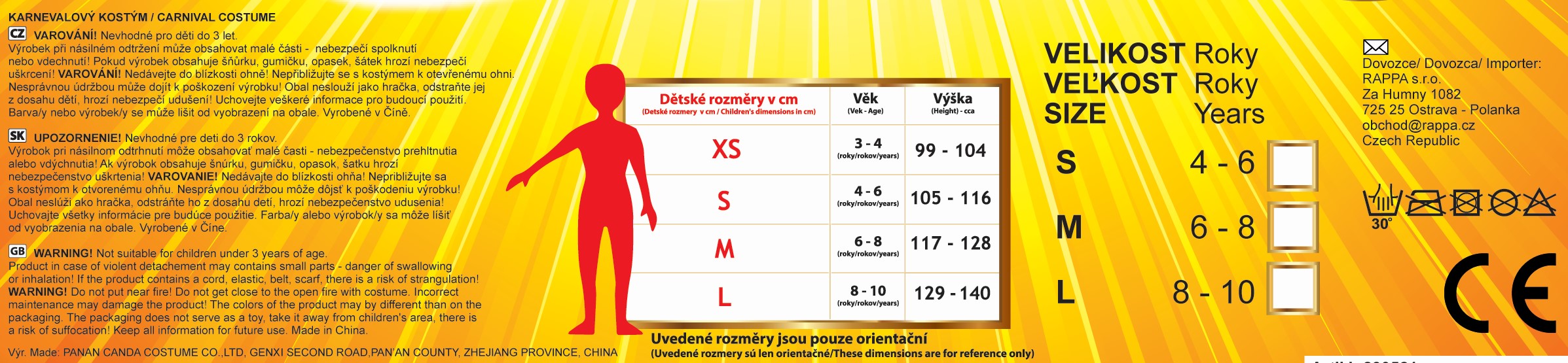 Staň se policistou v cuku, letu! Jakmile si oblečeš blůzu s nápisem POLICIE, kalhoty a čepici, v tu chvíli jsi připraven pomáhat a chránit! Kostým ve velikosti M je určen pro děti ve věkovém rozmezí 6-8 let (116-128 cm). Nejen letos je potřeba myslet EKO-nomicky i EKO-logicky! EKO-balení je vhodné zejména pro e-shopy kde zákazník nakupuje dle fotografie a není třeba velkého balení s věšákem. EKO-logicky – na balení bylo použito méně plastu a dalších materiálů. Jedná se o malý transparentní obal s fotografií. EKO-nomicky –EKO-obal zabere jen polovinu místa – šetřete skladová místa s námi!