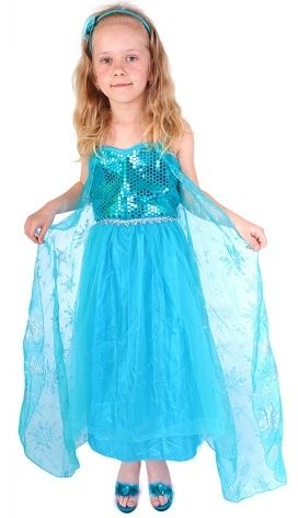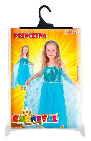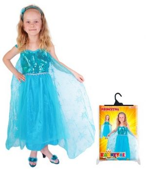 Úchvatný dívčí kostým pro všechny zimní princezny! Kostým princezny Elišky ve velikosti M je určen pro holčičky ve věkovém rozmezí 5-8 let (113-128 cm). Kostýmek je ušit v tyrkysově modré barvě a je zdoben oslnivými flitry a stříbrným lemováním. Součástí šatů je také plášť dekorován třpytivými sněhovými vločkami. Tento stylový kousek ti nesmí v šatníku chybět!