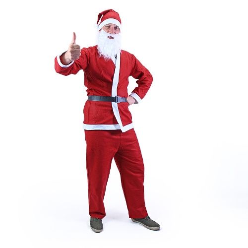 Stylový karnevalový kostým Santa Claus pro dospělé. Obsahuje kalhoty, kabátek, čepici a pásek. Univerzální velikost.