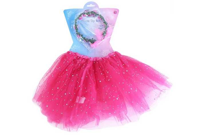 Sukně tutu pro všechny malé parádnice! Sukýnka růžové barvy je určena pro holčičky ve věkovém rozmezí 3-10 let (104-146 cm), obvod pasu 48-80 cm. Nadýchaná tylová suknička je zdobena saténovou gumou a zdobena flitry, součástí je půvabný věneček z růžových květinek.