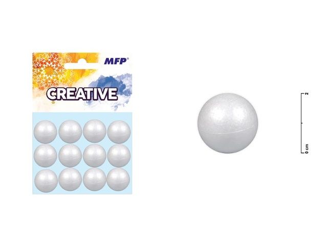 Vánoční dekorace, polystyrénové hladké koule vhodné k výrobě dekorací. Průměr: 2 cm Počet kusů v balení: 12 ks