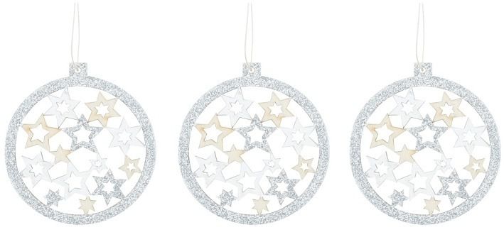 Koule dřevěná s glitry na zavěšení 7,5 cm, 3 ks