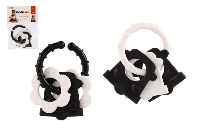Kousátka 4 tvary plast černobílé 2 druhy v sáčku 0m+