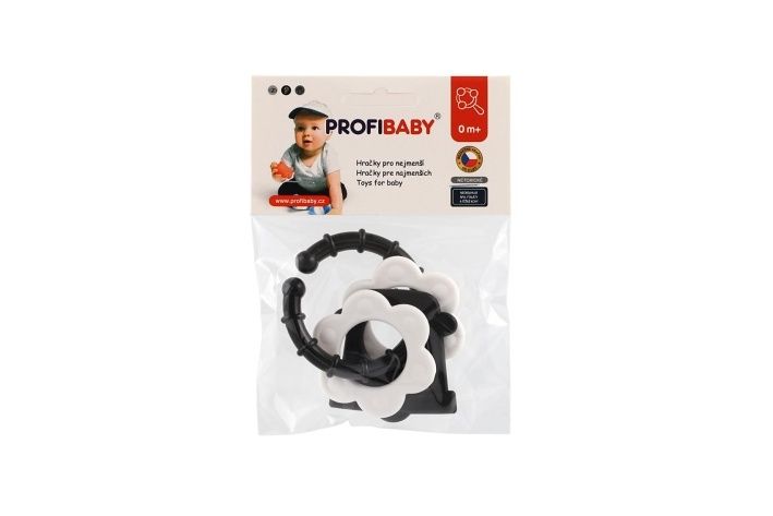 Chrastítko s úchytem pro lepší držení, rozvíjí zrakové a motorické dovednosti dítěte. Vyrobeno ze zdravotně nezávadných materiálů, splňujících náročné hygienické normy. Vhodné od narození.