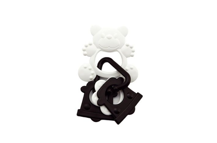 Kousátko s přívěskem černobílé. Hračka je vyrobena v Česku, bez ftalátů a má české atesty.